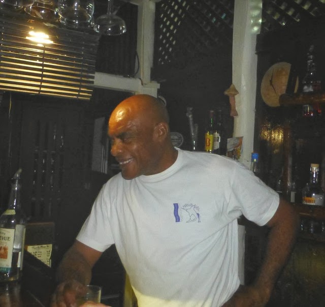 Henri est né dans la case où il se trouve aujourd’hui, c’était celle de sa grand-mère, mais il a grandi à Toulon avant de revenir à Saint Louis de Marie Galante. Un grand rire éclate derrière le bar, fort, inimitable… C’est Henri, joyeux, présent, affairé, attentif avec un fort caractère. Il passe des cuisines au bar, du bar aux tables, des tables au concert ou au spectacle, du concert aux cuisines …